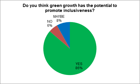 The poll that was conducted during DSDS 2013, majority of poll respondents—around 86 per cent, felt that ‘green growth’ does have the potential to promote ‘inclusiveness’. Perceptions around green growth and inclusiveness, captured from the poll are depicted in the pie chart above. As a next step, a collaborative project implemented by TERI and the Global Green Growth Institute will seek to examine empirically the benefits of green growth strategies on social outcomes.