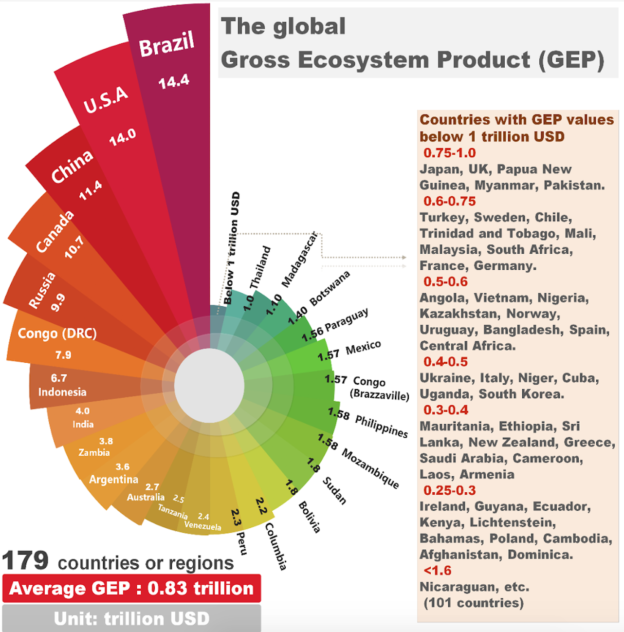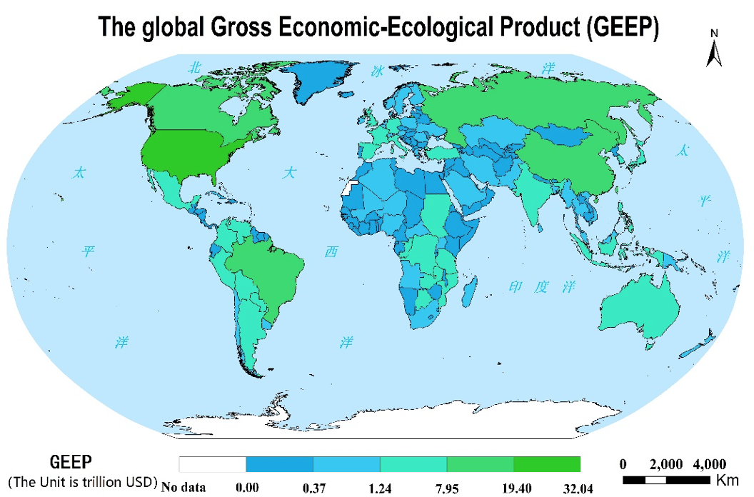 Research shows that the global GEEP in 2017 was $212.28 trillion, which was 2.7 times the total GDP of that year, of which the value of ecosystem services reached $132.75 trillion, accounting for 62.53%.