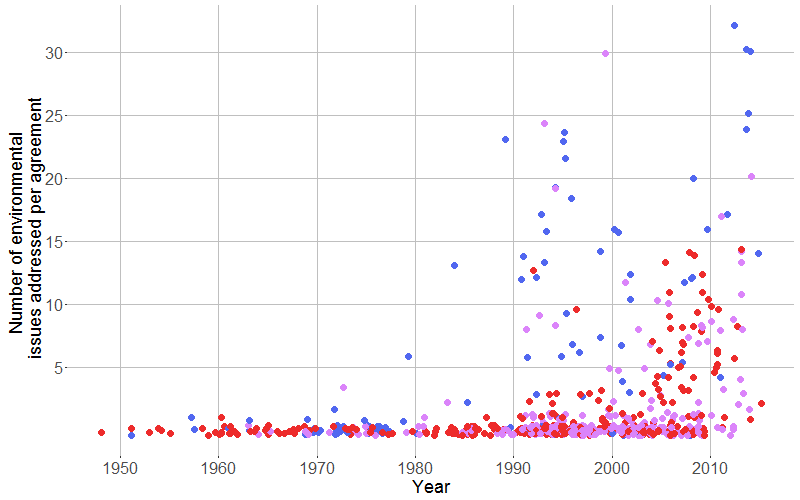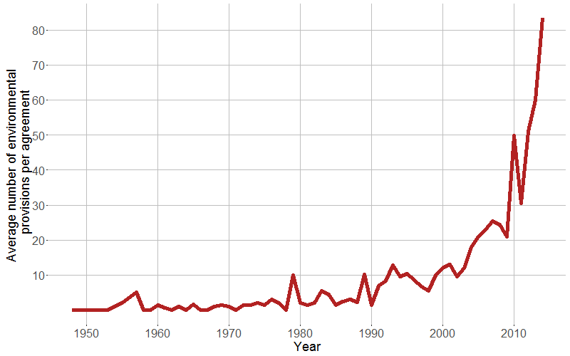Figure 1: Increasing average number of environmental provisions per agreement for all agreements