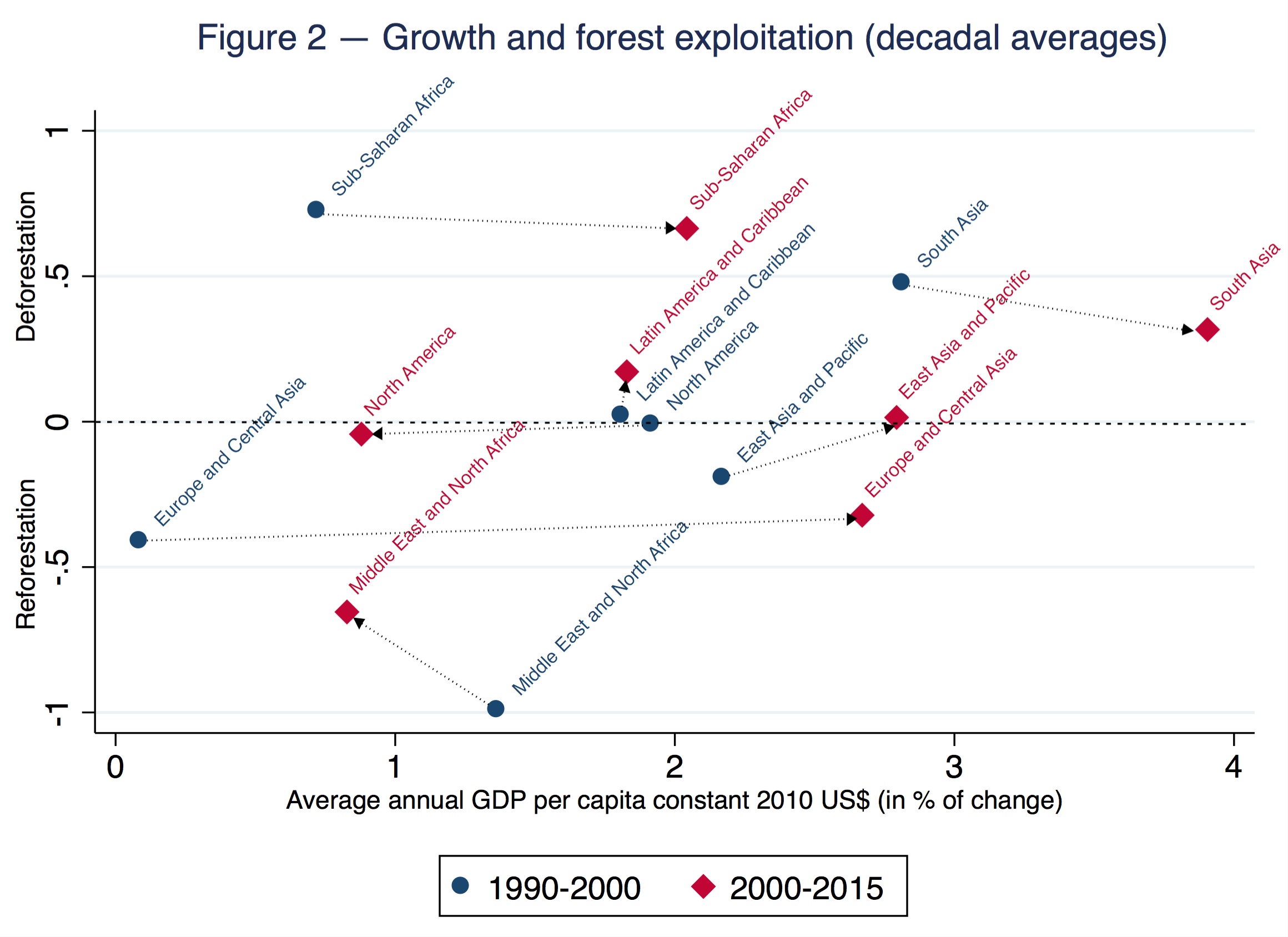 Figure 2 shows that deforestation rates in SSA have barely fallen despite economic growth. Figures 3 shows that demographic pressure in SSA is twice as high as in the next highest population-growth region. These figures suggests that the SSA could be at the edge of a Malthusian poverty