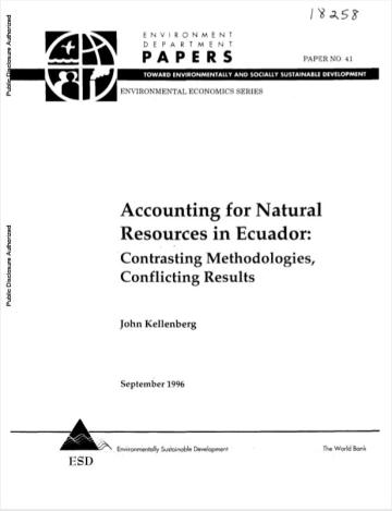 This case study examines natural capital depletion in Ecuador from 1971 to 1990—corresponding with an oil boom in the 1970s and economic stagnation in the 1980s. Two natural resource accounting (NRA) methodologies are utilized to measure the economic value of natural capital depletion in the petroleum sector: the Depreciation Method and the User Cost Method.