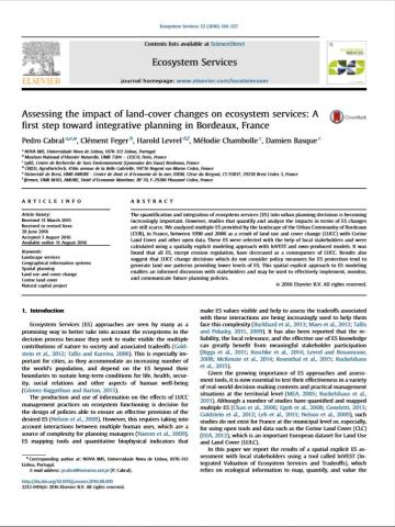 This case study analyses multiple ecosystem services provided by the landscape of the Urban Community of Bordeaux, France, between 1990 and 2006 as a result of land use and cover change (LUCC). The studied ecosystem services were food provisioning, flood regulation, water quality, erosion regulation, recreation, climate regulation, and biodiversity. These were selected with the help of local stakeholders and were calculated using a spatially explicit modeling approach with InVEST and own-produced models. The study also utilized free tools and open data, such as Corine Land Cover data.
