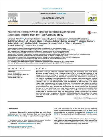 The findings indicate that the continued decrease of ecosystem services and biodiversity in Germany can be explained by implementation deficits within a well-established nature conservation system. Three case studies on grassland protection, the establishment of riverbank buffer zones, and water-sensitive farming illustrate the potential usefulness of introducing an economic perspective in conveying recognition of the values of ecosystem services and biodiversity. The authors provide five recommendations for enhancing the value of natural capital in rural areas: