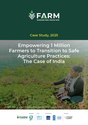 This case study highlights farmer training under the Financing Agrochemical Reduction and Management (FARM) project in India, offering lessons for reducing reliance on chemicals and plastics. FARM addresses these gaps by promoting safe biopesticide use across eight crops in 10 states. Training combines principles – soil health, integrated pest management and risk reduction – with hands-on instruction on dosage, application, safety, storage and disposal.