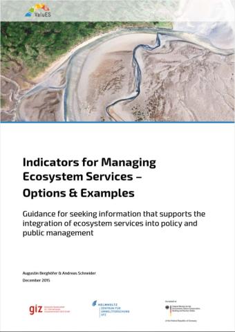 This report provides guidance on seeking information that supports the integration of ecosystem services into policy and public management. The study is divided into two parts. Part A gives a broad introduction on the identification, development, and properties of ecosystem service indicators, and their relation to the policy cycle. Part B discusses example indicators of different categories—provisioning services (food, fresh water, raw materials), regulating services (climate regulation, pollination, carbon sequestration), habitat or supporting services (maintenance of genetic diversity and habitats for species), and cultural services (tourism and recreation).