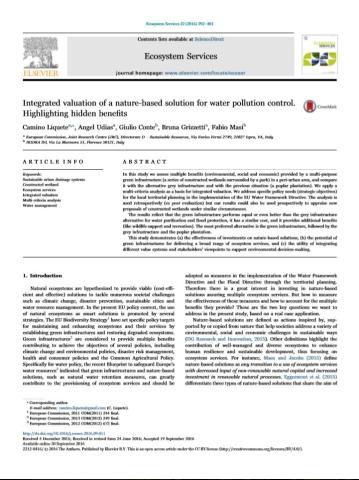 This study assesses multiple benefits (environmental, social, and economic) provided by a multi-purpose green infrastructure (a series of constructed wetlands surrounded by a park) in a peri-urban area and compare it with the alternative grey infrastructure and with the previous situation (a poplar plantation). The study area is located in Gorla Maggiore, a small municipality in northern Italy. A multi-criteria analysis was applied as a basis for integrated valuation. The study addresses specific policy needs (strategic objectives) for the local territorial planning in the implementation of the EU Water Framework Directive. The analysis is used retrospectively (ex post evaluation), but results could also be used prospectively to appraise new proposals of constructed wetlands under similar circumstances.