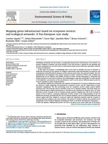 The approach implies, first, the quantification and mapping of the natural capacity to deliver ecosystem services and, secondly, the identification of core habitats and wildlife corridors for biota. All this information is integrated and finally classified in a two-level green infrastructure network. The methodology is replicable and flexible—it can be tailored to the objectives and priorities of the practitioners and it can be used at different spatial scales for research, planning, or policy implementation.