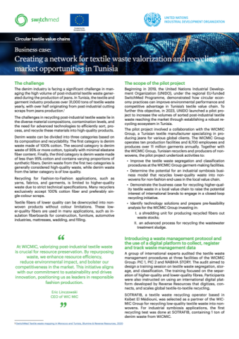 This case study is about a bottom-up initiative from a Tunisian supplier that managed to create a closed-loop recycling system for cutting scraps generated from the production of denim to offer international clients products made out of recycled pre-consumer textile waste.