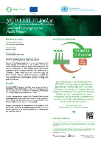This case study describes the economic and environmental advantages of implementing resource-efficient and cleaner production practices at a Jordanian beverage producer using the UNIDO TEST methodology.