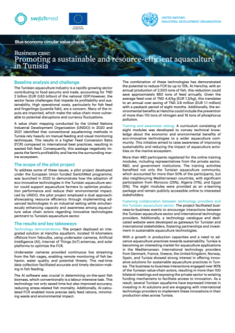 This case study explores opportunities for resource-efficient and cleaner production practices based on the use of eco-innovative technologies in the Tunisian aquaculture sector.
