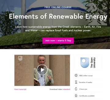 In recent decades there has been increasing global concern about the sustainability of the use of fossil fuels and nuclear power, which has led to increased interest in more sustainable renewable energy sources. These ‘renewables’ have been utilised for centuries, in water mills, windmills and wood stoves. But in recent years, technology has been developed to utilise these natural power sources on a much larger scale. This course studies renewable energy using the four Greek elements as the weekly themes: