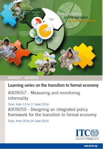 - Course on design of an integrated policy framework for the transition to formal economy focusing on the diagnostic of causes and patterns of informality at the national level to support/bolster/promote the design, development, implementation, and monitoring and evaluation of an integrated strategy framework for a transition to formal economy.