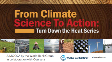 The World Bank Group is back again, with a new MOOC on climate change, ‘From Climate Science to Action’ after the Turn Down the Heat Series, starting on May 9, 2016. With an overview of COP21 outcomes from Paris, this action-oriented MOOC gives you the opportunity to learn about regional climate change impacts and sector-specific strategies to increase resilience and move towards a low-carbon future.