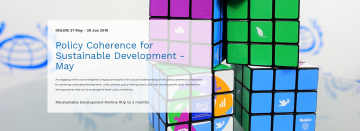 On 27 May - 28 June 2019, the United Nations System Staff College is offering an online course on "Policy Coherence for Sustainable Development." This engaging online course is designed to equip participants with a sound understanding of why policy coherence is important for achieving sustainable development, what coherent policy-making entails, and what are the specific tools, mechanisms and approaches that can be employed to foster policy coherence.
