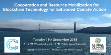 On 11 September 2018, the Climate Chain Coalition (CCC) will host the Cooperation and Resource Mobilization for Blockchain Technology for Enhanced Climate Action in San Francisco, CA.
