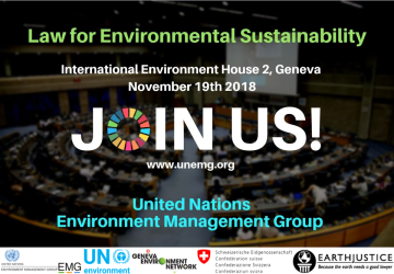 On 19 November 2018, the UN Environment Managemnt Group is hosting Law for Environmental Sustainability.