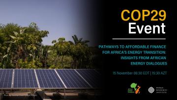 On 15 November 2024, (16:30-18:00 CET), the World Resources Institute (WRI) will host the COP29 side event Pathways to Affordable Finance for Africa’s Energy Transition: Insights from African Energy Dialogues.