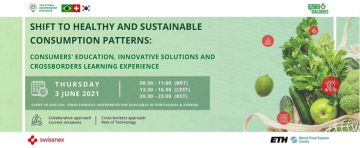 On 3 June 2021 at 13:30 CEST, Swissnex and ETH World Food System Center will be hosting an event on "UN Trilateral Dialogue: Shift Towards Healthy and Sustainable Consumption Patterns".