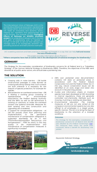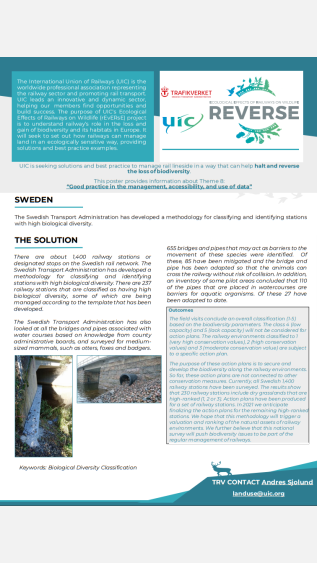 The "Ecological Effects of Railways on Wildlife" (rEvERsE) program, initiated by the International Union of Railways (UIC) in collaboration with a wide array of European stakeholders, is dedicated to finding effective solutions and identifying best practices for