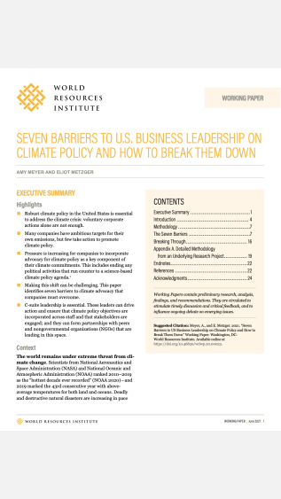 This paper identifies the central barriers that deter corporations in the United States from advocating for climate policy. It aims to establish strategies to develop climate policy among corporations.