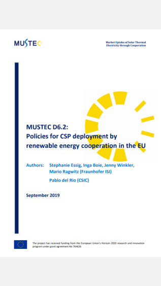 Policies for CSP deployment by renewable energy cooperation in the EU gives an overview about the political framework for renewable energy deployment in the EU with a focus on potential future cooperation between Member States for CSP deployment.