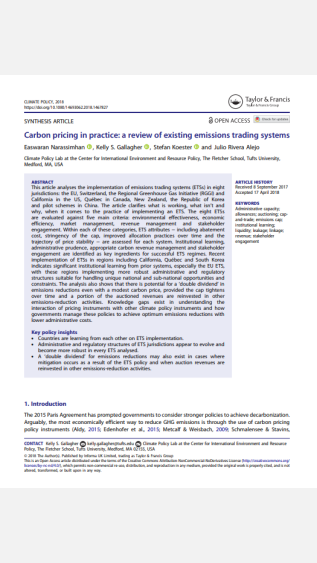 Carbon Pricing in Practice: A review of existing emissions trading systems analyses the implementation of emissions trading systems (ETSs) in eight jurisdictions: the EU, Switzerland, the Regional Greenhouse Gas Initiative (RGGI) and California in the US, Québec in Canada, New Zealand, the Republic of Korea and pilot schemes in China. The article clarifies what is working, what isn’t and why, when it comes to the practice of implementing an ETS.