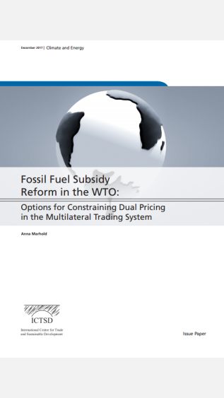 The paper Fossil Fuel Subsidy Reform in the WTO: Options for Constraining Dual Pricing in the Multilateral Trading System discusses the practice of energy dual pricing in the broader context of fossil fuel subsidy reform. The contribution explores avenues for constraining dual pricing, which is approached as a fossil fuel subsidy, within the framework of the WTO. It does so by proposing options under existing rules, as well as suggesting changes to the system beyond current rules.