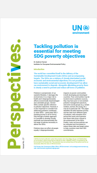 The paper Tackling Pollution is Essential for Meeting SDG Poverty Objectives identifies the links between poverty and the risks from different types of pollution, with examples from around the world, and examines how these risks pose a threat to the achievement of the SDGs.