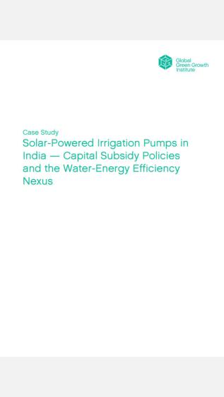 The case study Solar-Powered Irrigation Pumps in India — Capital Subsidy Policies and the Water-Energy Efficiency Nexus looks at India’s National Solar Mission program, under which the central and state governments support farmers not only by providing a capital cost subsidy on solar pump systems, but also by creating an enabling framework on their deployment by actively engaging key stakeholders.
