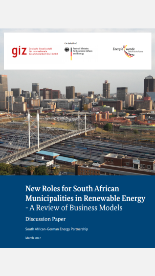 The Discussion Paper New Roles for South African Municipalities in Renewable Energy - A Review of business models reviews possible business models for South African municipalities to seize arising opportunities and minimise potential risks associated with the introduction of renewable energy technologies in the domestic electricity system. It proposes a typology of available business models for municipalities to seize emerging opportunities arising from renewable energy technologies. Three overarching roles, spilt into seven business models, are considered for municipalities: building electricity generation capacity; procuring electricity; and playing a facilitation function. Based on a three-pronged methodological framework taking into account the drivers of the business models; their techno-economic potential; and their ability to manage risks (regulatory, financial and socio-political); this report reviews each business model, highlighting their strengths and weaknesses.