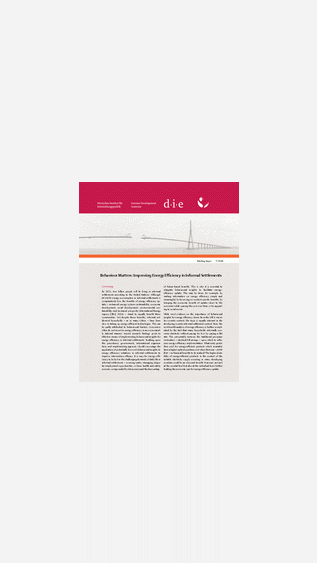 By 2022, two billion people will be living in informal settlements according to the United Nations. Although per capita energy consumption in informal settlements is comparatively low, the benefits of energy efficiency uptake – enhanced energy system sustainability, economic development, social development, environmental sustainability, and increased prosperity (International Energy Agency [IEA], 2014) – stand to equally benefit these communities. Yet despite these benefits, informal settlement households – as so many others – have been slow in taking up energy-efficient technologies. This can be partly attributed to behavioural barriers: Consumers often do not invest in energy efficiency in an economically rational manner. Recent research findings point to effective means of implementing behavioural insights for energy efficiency in informal settlements. Building upon this precedence, governments, international organisations and implementing agencies should encourage the application of potentially low-cost behavioural insights to energy efficiency initiatives in informal settlements to improve intervention efficacy.