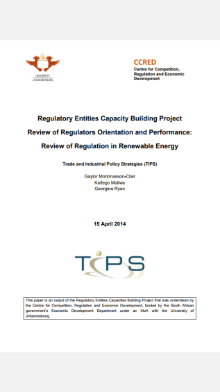 The report Review of Regulation in Renewable Energy provides an analysis of how South Africa’s renewable energy sector has been developing. It identifies the key players, policies and regulation that have shaped the development of the sector.