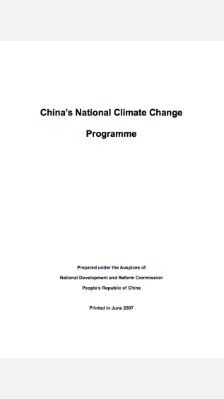 China's National Climate Change Programme outlines the objectives, basic principles, key areas of actions as well as policies and measures to address climate change for the period up to 2010.
