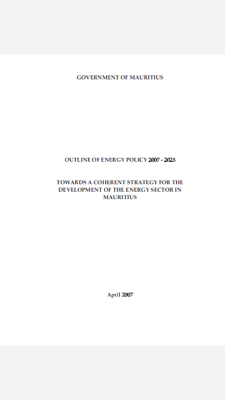 The vision of the Government of Mauritius is to achieve the self-sufficiency in energy supply in the long term, where individual houses would have the possibility and capacity to fully tap renewable resources such as wind, solar, biogas in a decentralized system, which would allow energy supply t