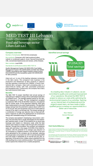 This case study examines the economic and environmental benefits of adopting more efficient and cleaner production methods in a Lebanese dairy company. It guides the process using a specific method, the TEST methodology, developed by UNIDO.