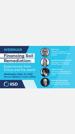 On 12 September 2018 (10:00 AM CEST), the International Institute for Sustainable Development (IISD) is hosting a webinar on "Financing Soil Remediation: Experiences from China and the world".