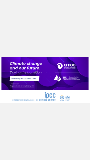 On 28 April 2021, Working Group III (WG III) of the Intergovernmental Panel on Climate Change (IPCC), the RFF-CMCC European Institute on Economics and the Environment (EIEE) and the Euro-Mediterranean Center on Climate Change (CMCC) are hosting a webinar on "Climate change and our future - Driving the transition".