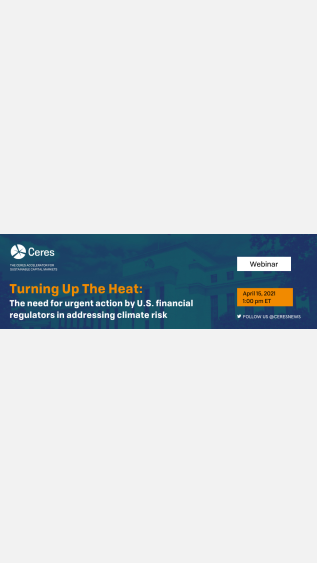 On 15 April 2021 at 19:00 CEST, Ceres is hosting a webinar on "Turning Up The Heat: The Role of Financial Regulators to Address Climate Risks".