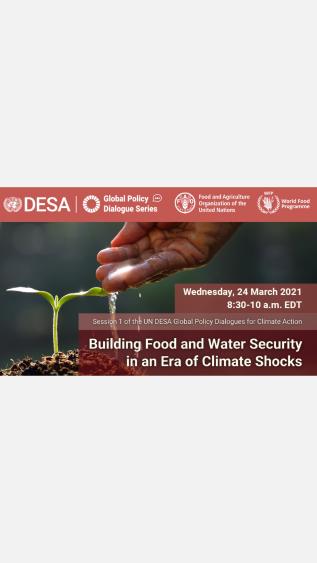 On 24 March 2021 at 13:30 CET, the UN Department of Economic and Social Affairs (UNDESA) is hosting a webinar on "Building Food and Water Security in an Era of Climate Shocks".