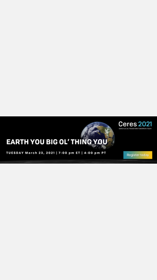 On March 24 2021 at 00:00 CET (March 23 at 19:00 EST), Ceres is hosting a webinar on "Earth You Big Ol’ Thing You", an animated short film inspired by a magical love song to the Earth.