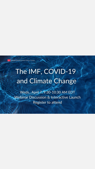 On 7 April 2021, the Boston University Global Development Policy Center and experts from the IMF’s Independent Evaluation Office and Freie Universitat, Berlin is hosting a webinar on IMF surveillance, COVID-19 and climate change.