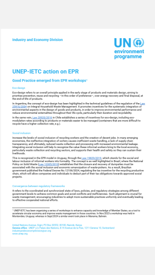 UNEP-IETC has been actively supporting countries in advancing Extended Producer Responsibility (EPR) systems through regional workshops and knowledge-sharing efforts.