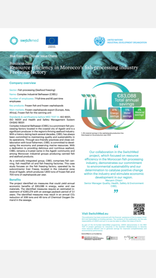 This case study illustrates how the MED TEST III project supports resource efficiency in the fish freezing sector in Morocco. Through the identifed measures, a fich freezing unit could reduce cost and improve efficiency.