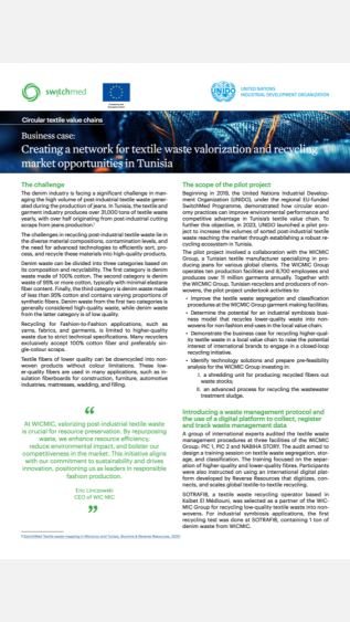 This case study is about a bottom-up initiative from a Tunisian supplier that managed to create a closed-loop recycling system for cutting scraps generated from the production of denim to offer international clients products made out of recycled pre-consumer textile waste.