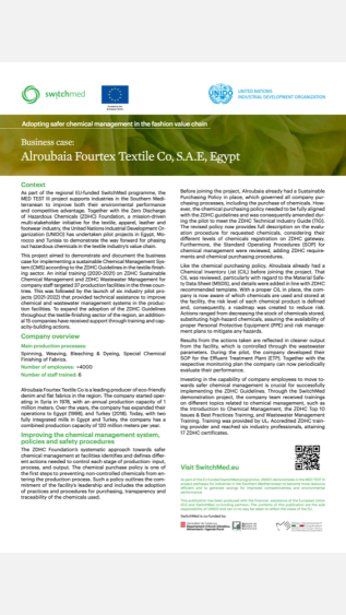 This case study examines the implementation of a sustainable Chemical Management System (CMS) in a fully integrated, leading Egyptian ready-made garments company, aligning with ZDHC Guidelines.