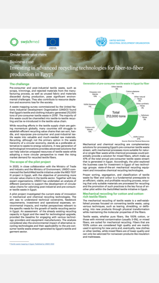 This case study explores the opportunities for Egypt to invest in mechanical and chemical recycling technologies for pre-consumer textile waste.