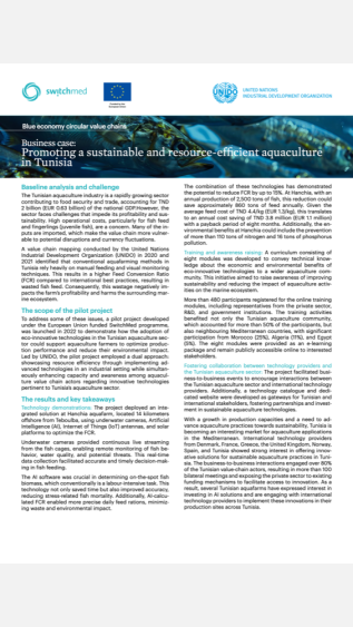 This case study explores opportunities for resource-efficient and cleaner production practices based on the use of eco-innovative technologies in the Tunisian aquaculture sector.
