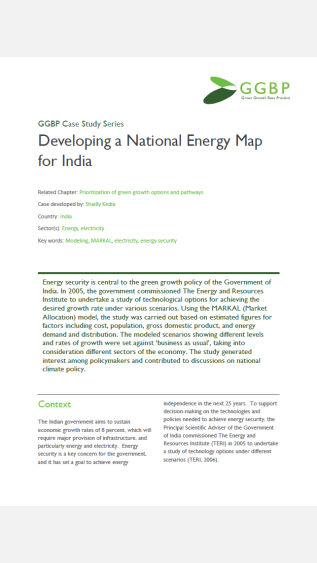Energy security is central to the green growth policy of the Government of India. In 2005, the government commissioned The Energy and Resources Institute to undertake a study of technological options for achieving the desired growth rate under various scenarios.