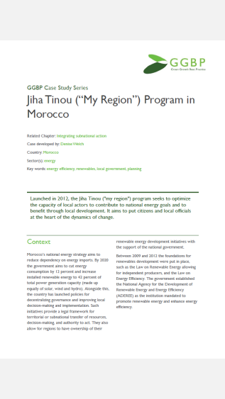 Launched in 2012, the Jiha Tinou ("my region") program seeks to optimise the capacity of local actors to contribute to national energy goals and to benefit through local development. It aims to put citizens and local officials at the heart of the dynamics of change.
