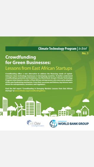 The Climate Technology Program Brief: Crowdfunding for Green Businesses - Lessons from East African Startups tries to better understand crowdfunding’s potential and limitation by interviewing a number of East African entrepreneurs who were early adopters of this new fundraising mechanism.